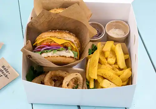 Nachhaltigkeit inklusive: Die Pommesschütten aus Karton sind plastikfrei, kompostierbar und zu 100 % recycelbar. Dank der Barriere aus pflanzlichen Rohstoffen sind sie zudem fett- und feuchtigkeitsresistent. Vollständig klimakompensiert bieten sie eine umweltfreundliche Lösung für deinen Gastronomiebetrieb - und ein nachhaltiges Geschmackserlebnis für deine Kund:innen.